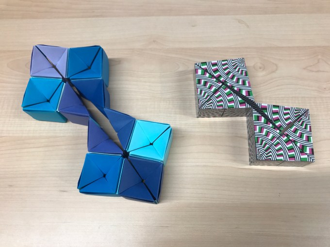 The Yoshimoto Cube is a marvellous folding and flexing toy originally conceived by Noaki Yoshimoto in 1971: here’s a video of the whole set of 3 interconnecting cubes.
