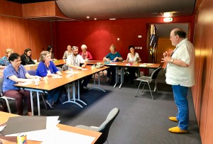 How to achieve a relaxed and happy atmosphere? At the outset I make a point of establishing a rapport with the class. I INSIST on informality, and positively encourage heckling, interruptions, even joke-telling and spontaneous singing at my classes. In Aix, my class, completely uninvited, burst into a group performance of “Aux marches du palais” during our workshop.