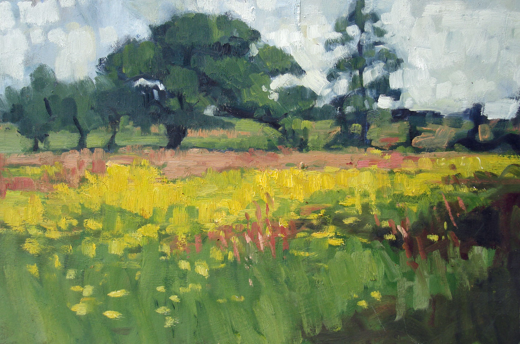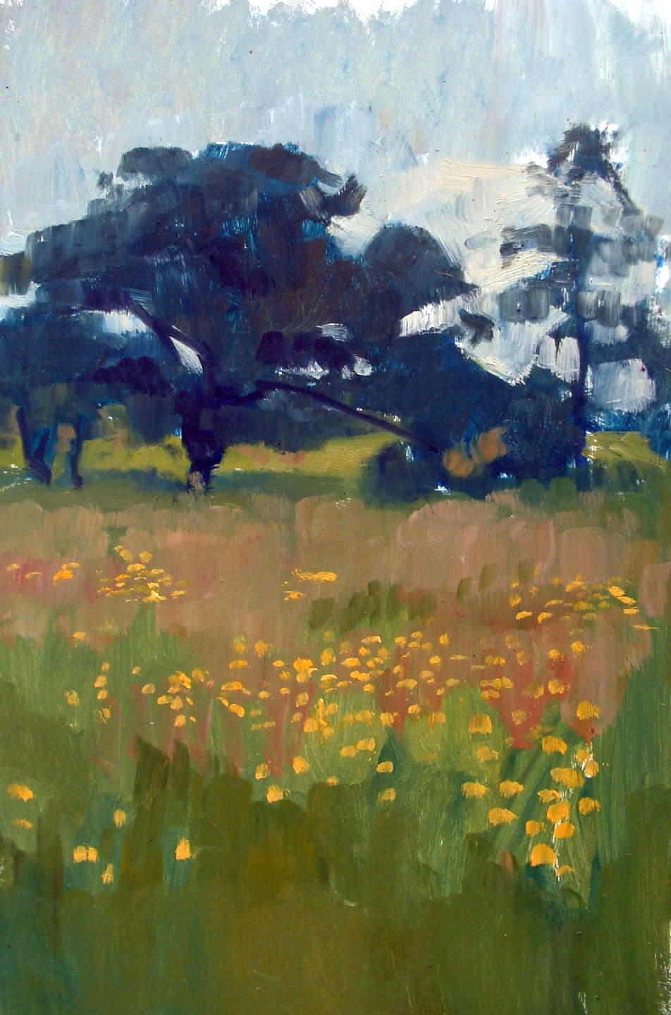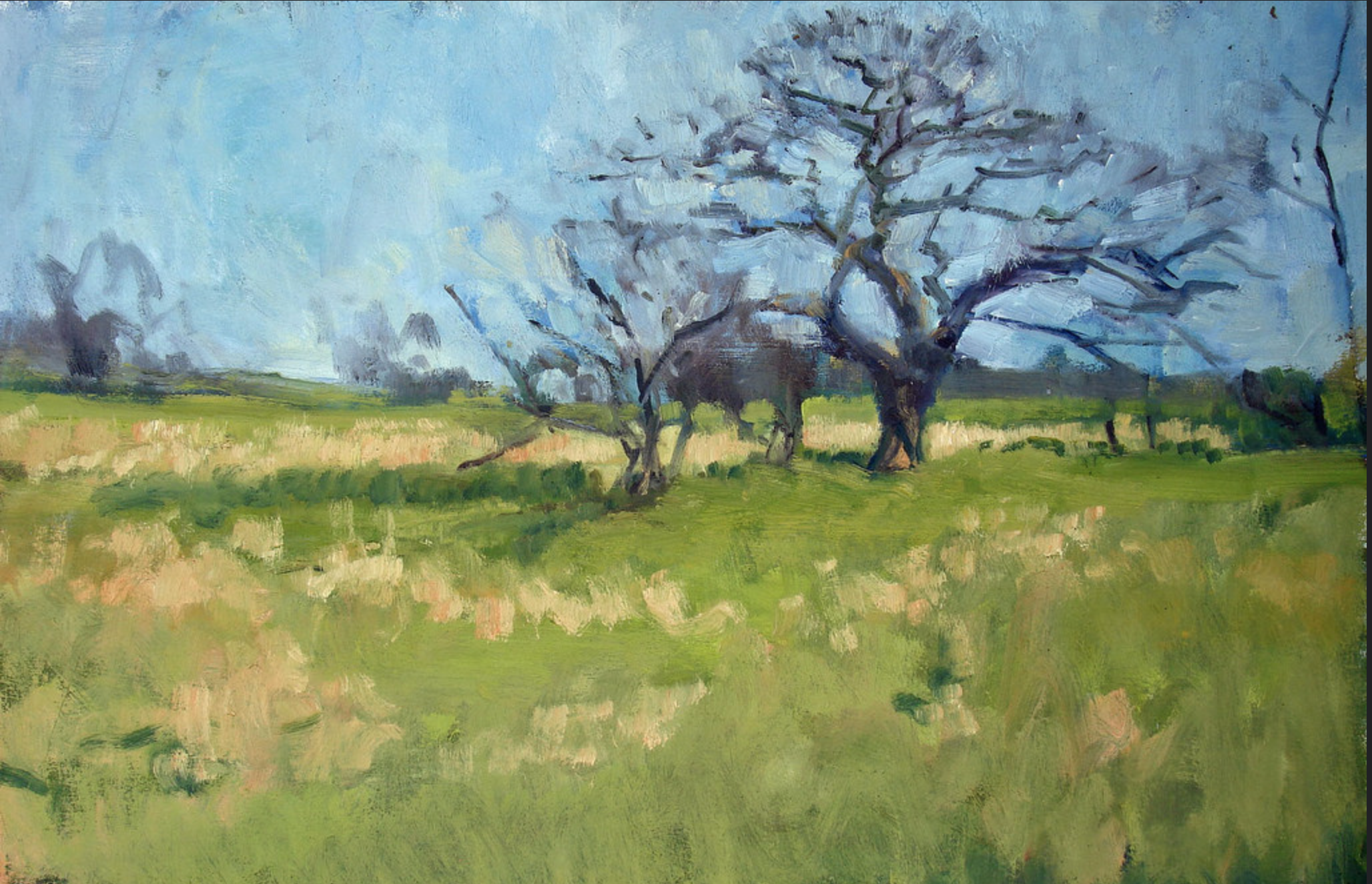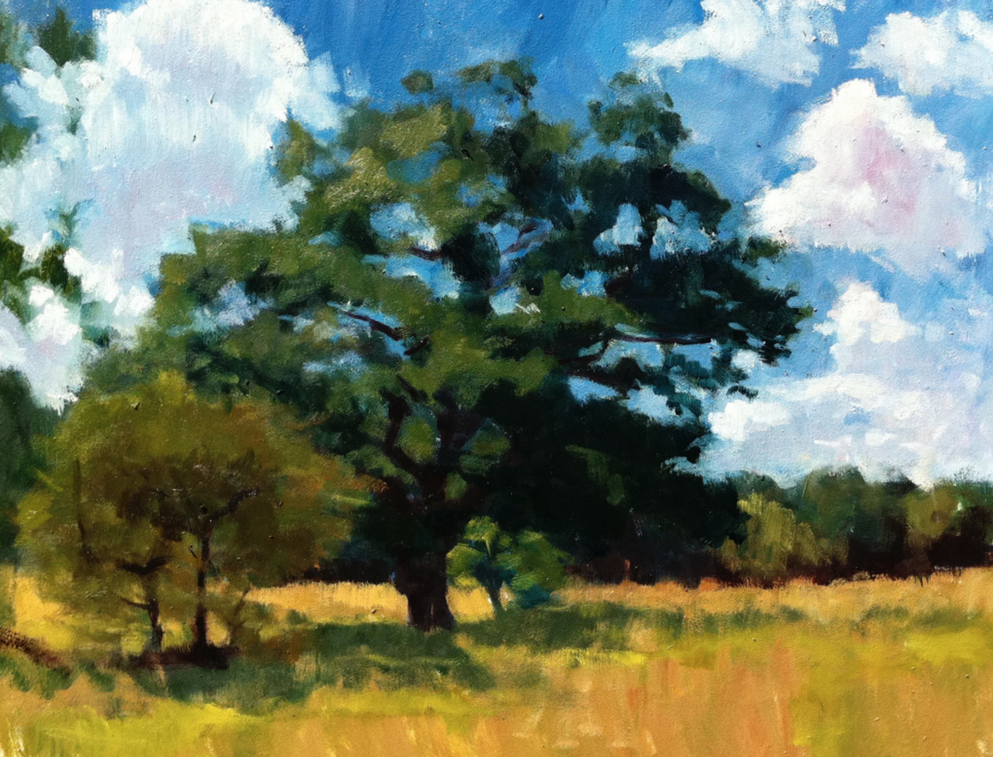 Since moving to my house 23 years ago, I’ve loved and admired this magnificent gnarled oak tree, which is just five minutes from my door. Every time Assia and I walk past it, we stop to admire it, whatever the season. We have been known to have conversation with it. Once, returning from a late session at the pub, I even admit to embracing this wonderful old friend. So of course it has been the subject of a number of paintings over the years. Here are some of them, good, bad and indifferent.