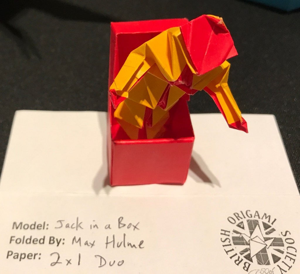 It was immediately clear that Max was a natural origami creator. I took Max’s class for a matchbox which is folded flat, then pops into 3D at the last move when the tray is pulled open: simple, clever, and fun to fold.